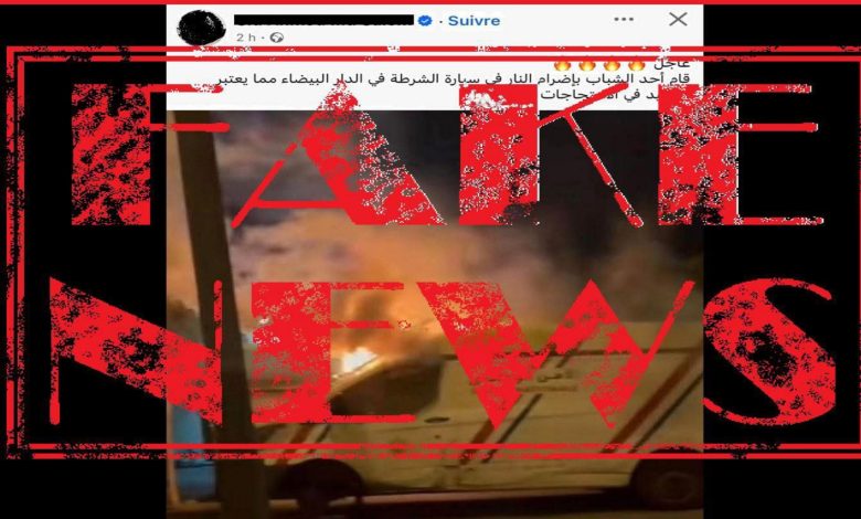 المديرية العامة للامن الوطني تنفي بشكل قاطع صحة نشر صورة اشتعال النيران بسيارة الامن الوطني بالمرسى مشفوعة بتعليق كادب
