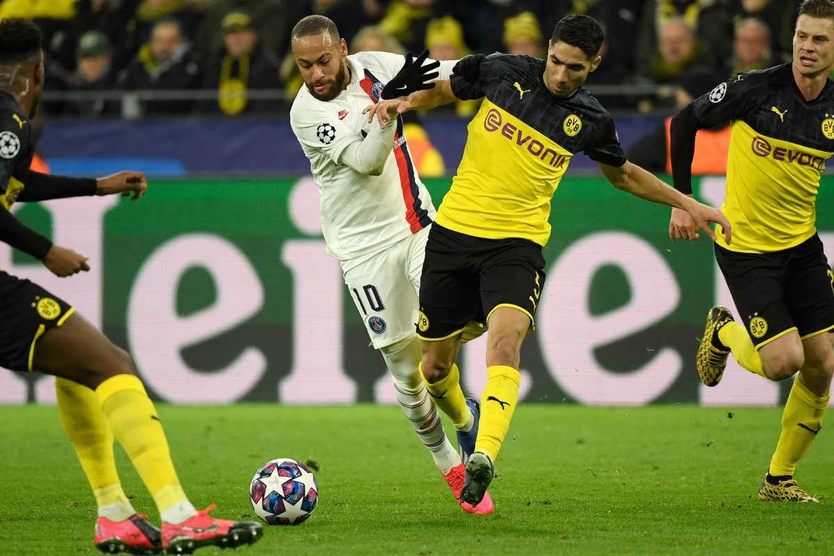 إلتقطت عدسات كاميرات المصورين في ملعب سيغنال ايدونا بارك بدورتموند لقطة تبادل الأقمصة بين الدولي المغربي أشرف حكيمي والنجم البرازيلي نيمار لاعب PSG .، بعد المباراة التي جمعت بين الطرفيْن، مساء الأمس الثلاثاء، ضمن ذهاب ثمن نهائي دوري أبطال أوروبا.