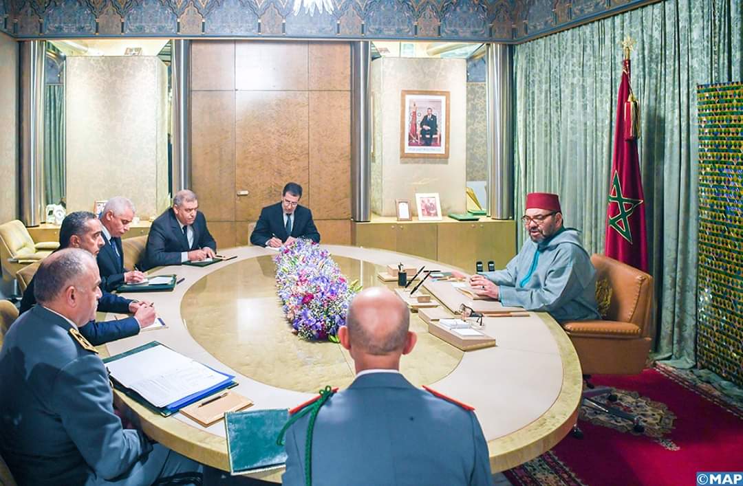 وبناء على المعطيات التي قدمها السيد وزير الصحة، وحرصا من جلالة الملك، حفظه الله، على الرفع من قدرات المنظومة الصحية الوطنية في مواجهة هذا الوباء، أصدر جلالة الملك، حفظه الله، القائد الأعلى ورئيس أركان الحرب العامة للقوات المسلحة الملكية، تعليماته السامية للمفتش العام للقوات المسلحة الملكية، قصد وضع المراكز الطبية المجهزة، التي سبق لجلالته أن أمر بإحداثها لهذا الغرض، بمختلف جهات المملكة، رهن إشارة المنظومة الصحية بكل مكوناتها، إن اقتضى الحال وعند الحاجة.
