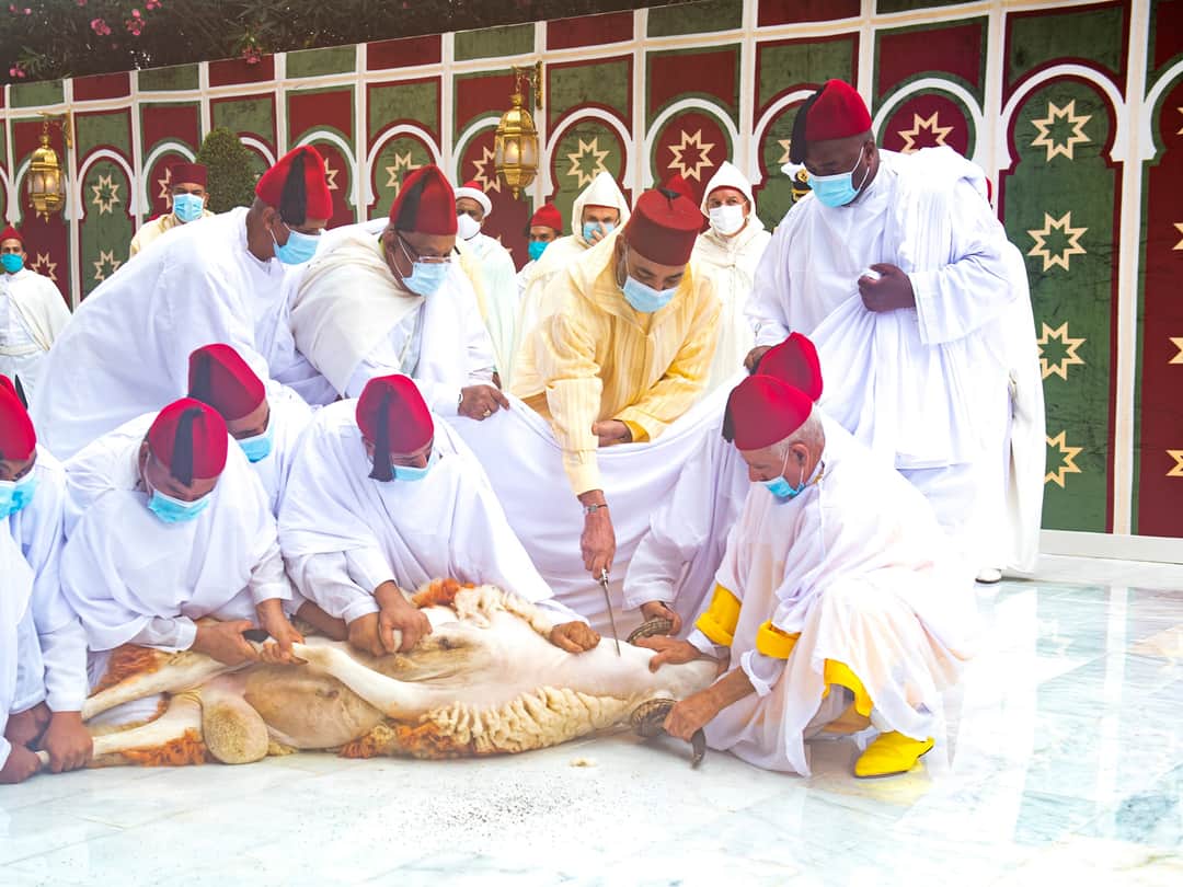 إثر ذلك، قام جلالة الملك بنحر أضحية العيد، اقتداء بسنة جده المصطفى عليه أزكى الصلاة والسلام، فيما قام الإمام بنحر الأضحية الثانية.