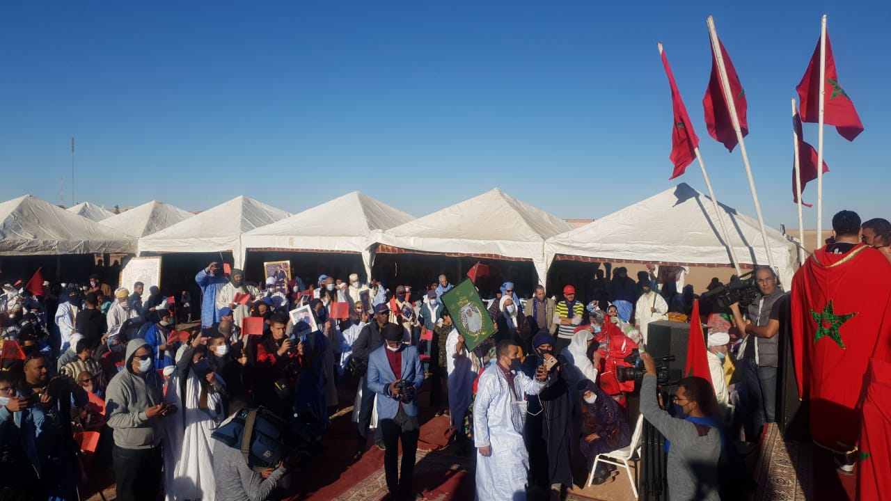 كما أشاد ممثلو الفعاليات المشاركة في هذه التظاهرة الحاشدة من شيوخ وأعيان القبائل ومنتخبيها، بدور حكمة وبعد نظر الملك محمد السادس في تحقيق عديد من الخطوات الدبلوماسية لصالح المغرب والتي مكنت من إفشال مناورات الخصوم واستعراضاتهم المدنية والعسكرية وكشف زيف ادعاءاتهم الواهية، في مقابل استتباب المشروعية وانتصار الواقعية التي تتناغم مع روح المبادرة المقدامة للحكم الذاتي، وصيانة الموقع المتميز للمملكة والتزاماتها المبدئية والثابتة من الملفات التي تستأثر بالاهتمام وفي طليعتها القضية الفلسطينية.