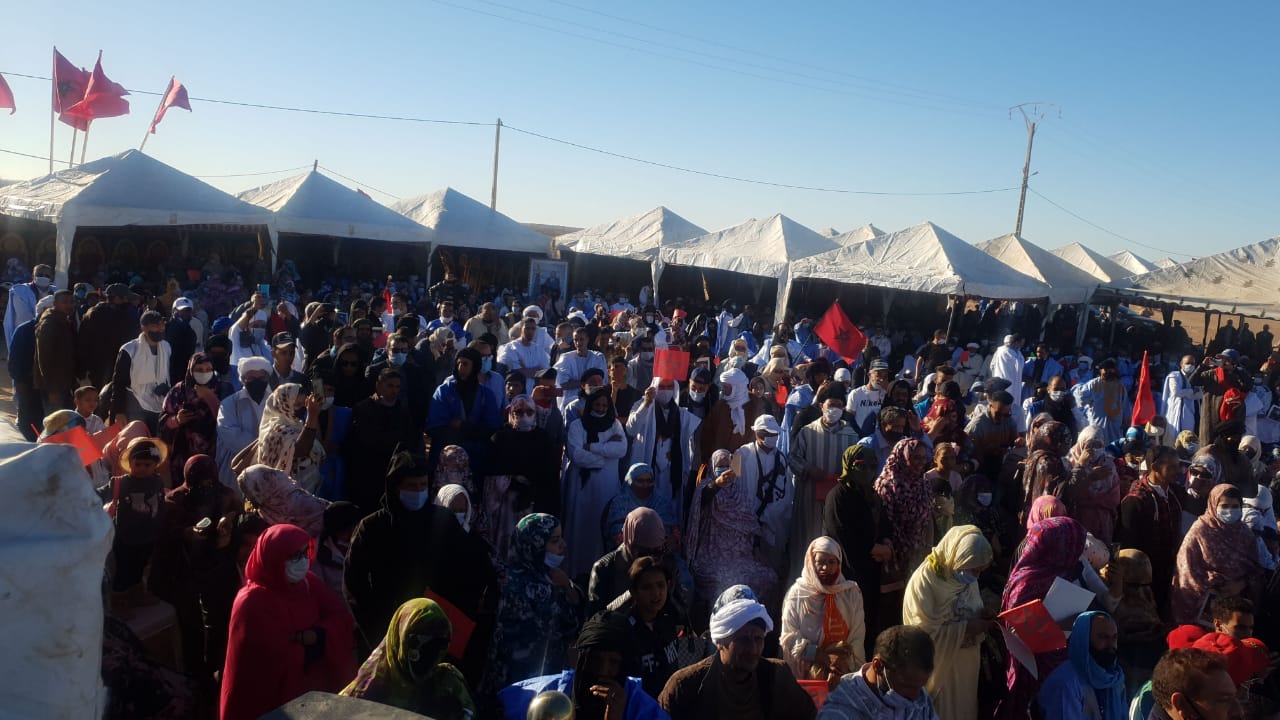 سبعة ألاف من أبناء قبائل وادنون تردد النشيد الوطني بجماعة المحبس المتاخمة للجدار الأمني وترفع برقية ولاء وإخلاص لجلالة الملك محمد السادس