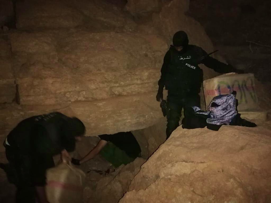 وأضاف البلاغ أن الأبحاث والتحريات المنجزة على ضوء هذه القضية مكنت من تحديد مكان إخفاء شحنة للمخدرات بمنطقة خلاء تبعد بحوالي 150 كيلومتر في اتجاه مدينة السمارة، وذلك قبل أن يتم الانتقال إلى عين المكان وحجز 53 رزمة من مخدر الشيرا بلغ مجموع وزنها الإجمالي طن و590 كيلوغراما.