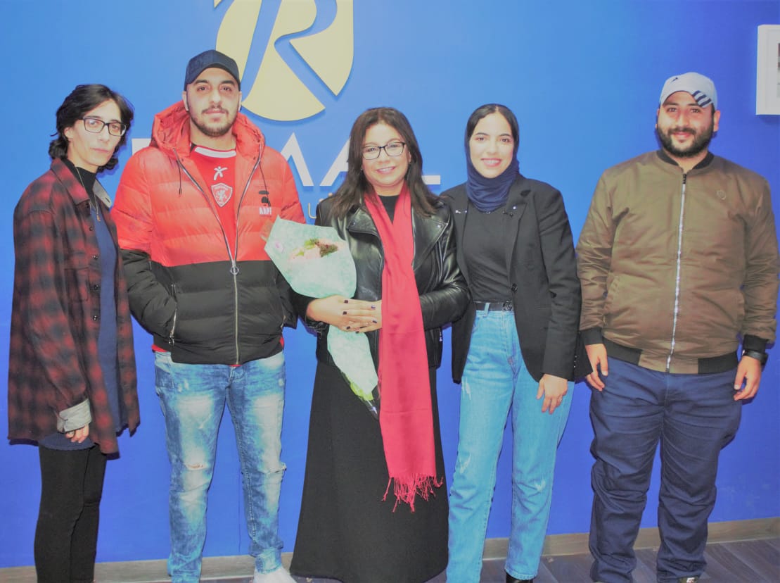 القاصة والكاتبة “لطيفة باقا” رفقة طاقم قناة رمال تيفي