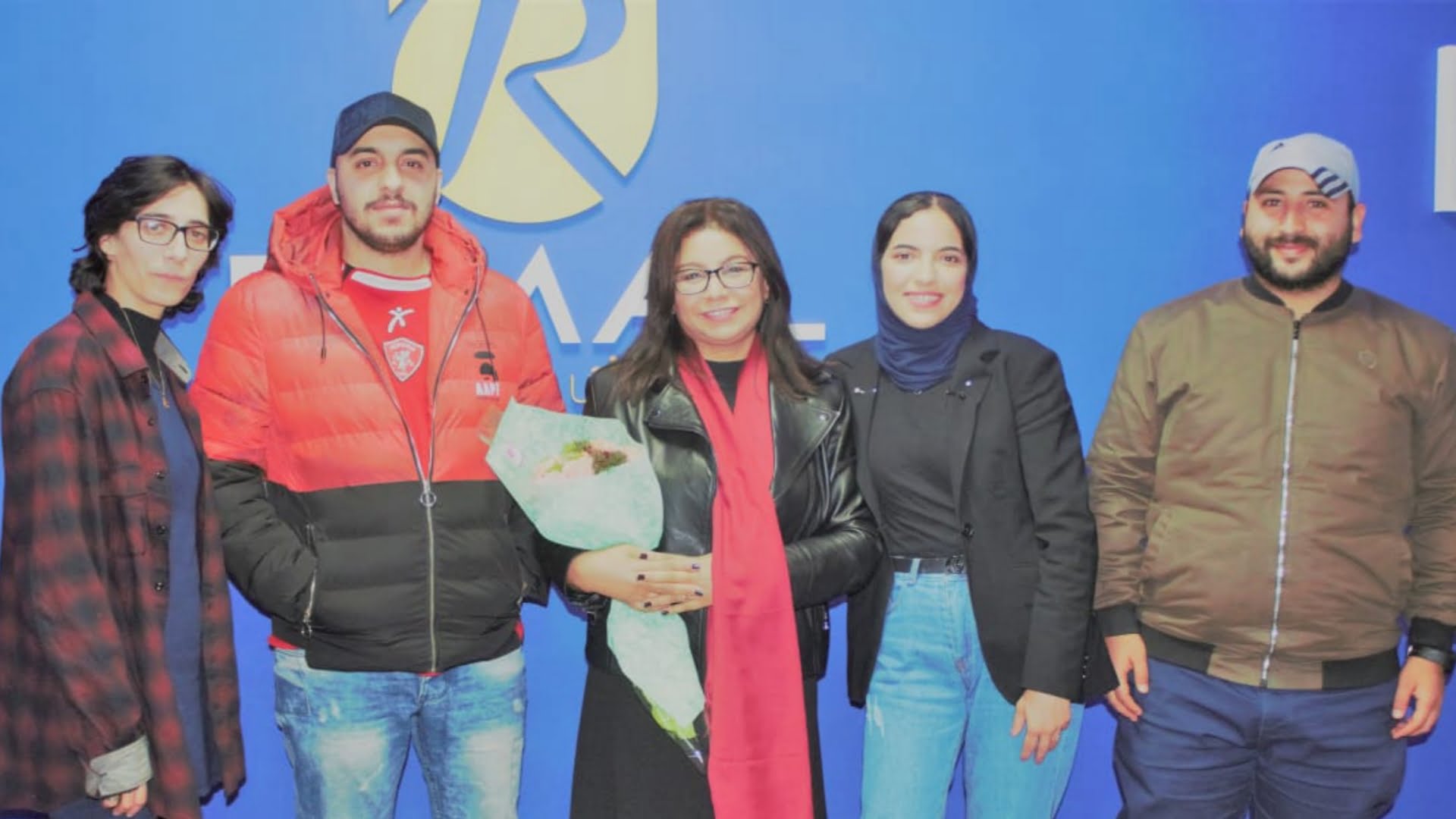 القاصة والكاتبة “لطيفة باقا” رفقة طاقم قناة رمال تيفي