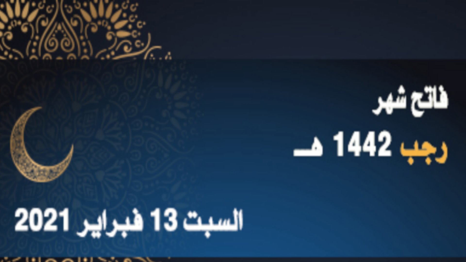 أعلنت وزارة الأوقاف والشؤون الإسلامية أن فاتح شهر رجب لعام 1442 هـ، هو يوم غد السبت 13 فبراير 2021 م.