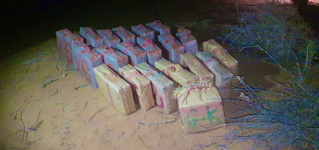 وذكر بلاغ للمديرية العامة للأمن الوطني، أن التدخلات الأمنية المنجزة في هذه القضية أسفرت عن ضبط سبعة مشتبه فيهم، في مرحلة أولى، من بينهم مواطن موريتاني وثلاثة أشخاص ينحدرون من مخيمات تندوف، وذلك قبل أن تسفر عمليات التفتيش عن ضبط شحنات المخدرات مطمورة في منطقة صحراوية تبعد بحوالي أربعين كيلومترا شرق مدينة العيون.