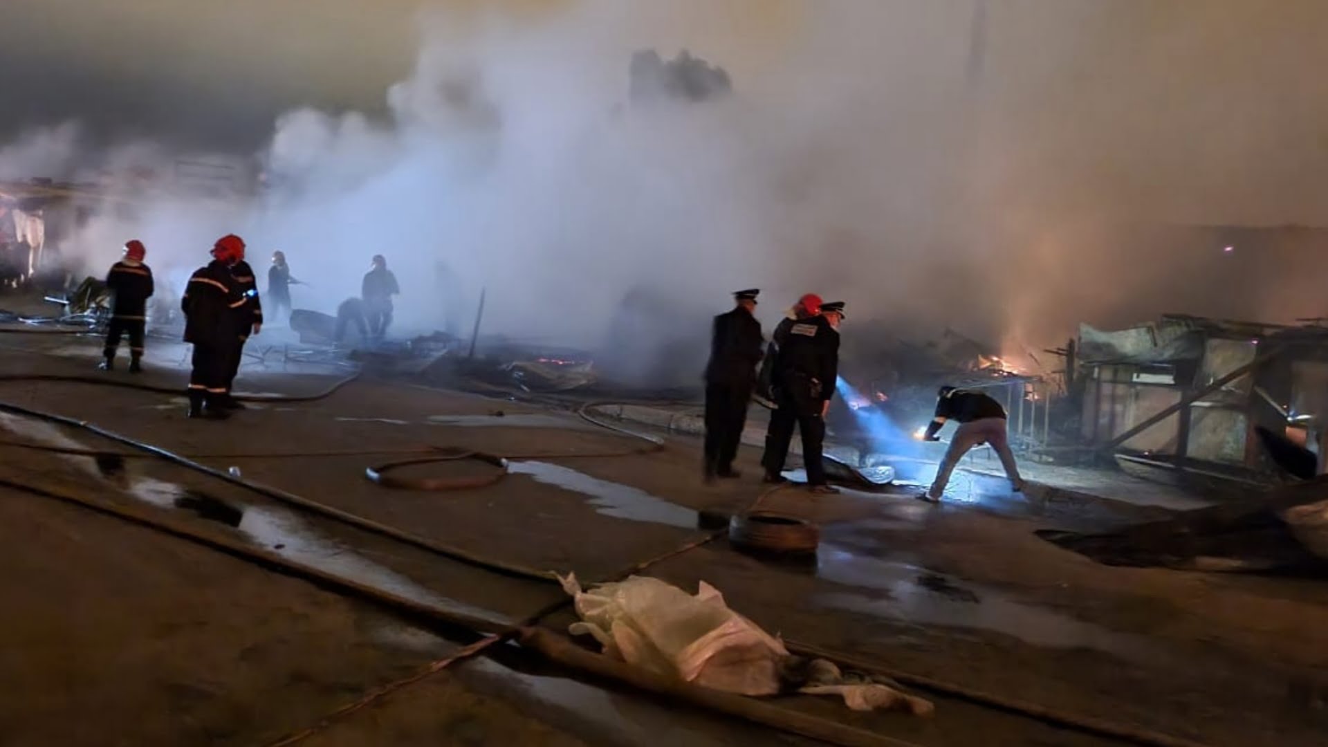 اندلع حريق مهول في الساعات الأولى من صباح اليوم الجمعة ، بسوق المتلاشيات المحادي لمحلات بيع الدجاج بإنزكان.