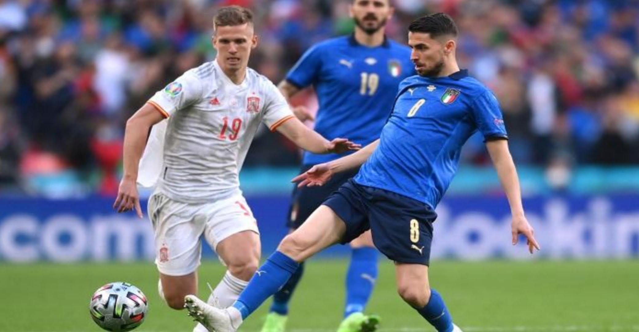 وانتهى الشوط الأول بالتعادل السلبي ، ثم سجل فيدريكو كييزا هدف التقدم للآزوري في الدقيقة 60 ، ولكن البديل ألفارو موراتا سجل هدف التعادل للماتادور الإسباني في الدقيقة 80 ليدفع بالمباراة إلى الوقت الإضافي.