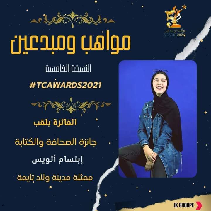 تتويج الإعلامية بقناة “رمال تيفي” ابتسام اتويس بلقب مواهب ومبدعين في نسختها الخامسة جائزة الصحافة و الإعلام