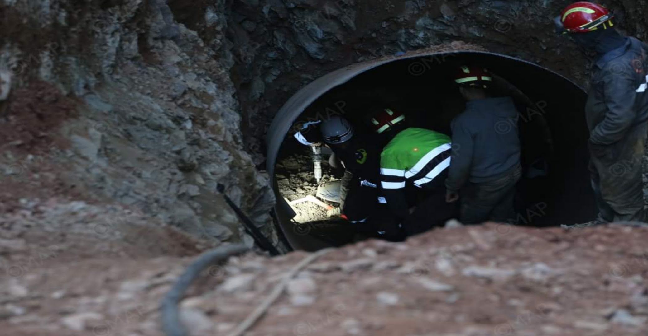 وصرح مصدر من السلطات المحلية ان أشغال الحفر الافقي التي تتم يدويا وبآلات كهربائية صغيرة لاعتبارات متعلقة بسلامة المنقذين اصطدمت بصخرة كبيرة جرى للتو تفتيتها بعدما استغرق الأمر اكثر من 3 ساعات تفاديا لتصدع وتشقق التربة مخافة انهيار الحفرة او البئر.