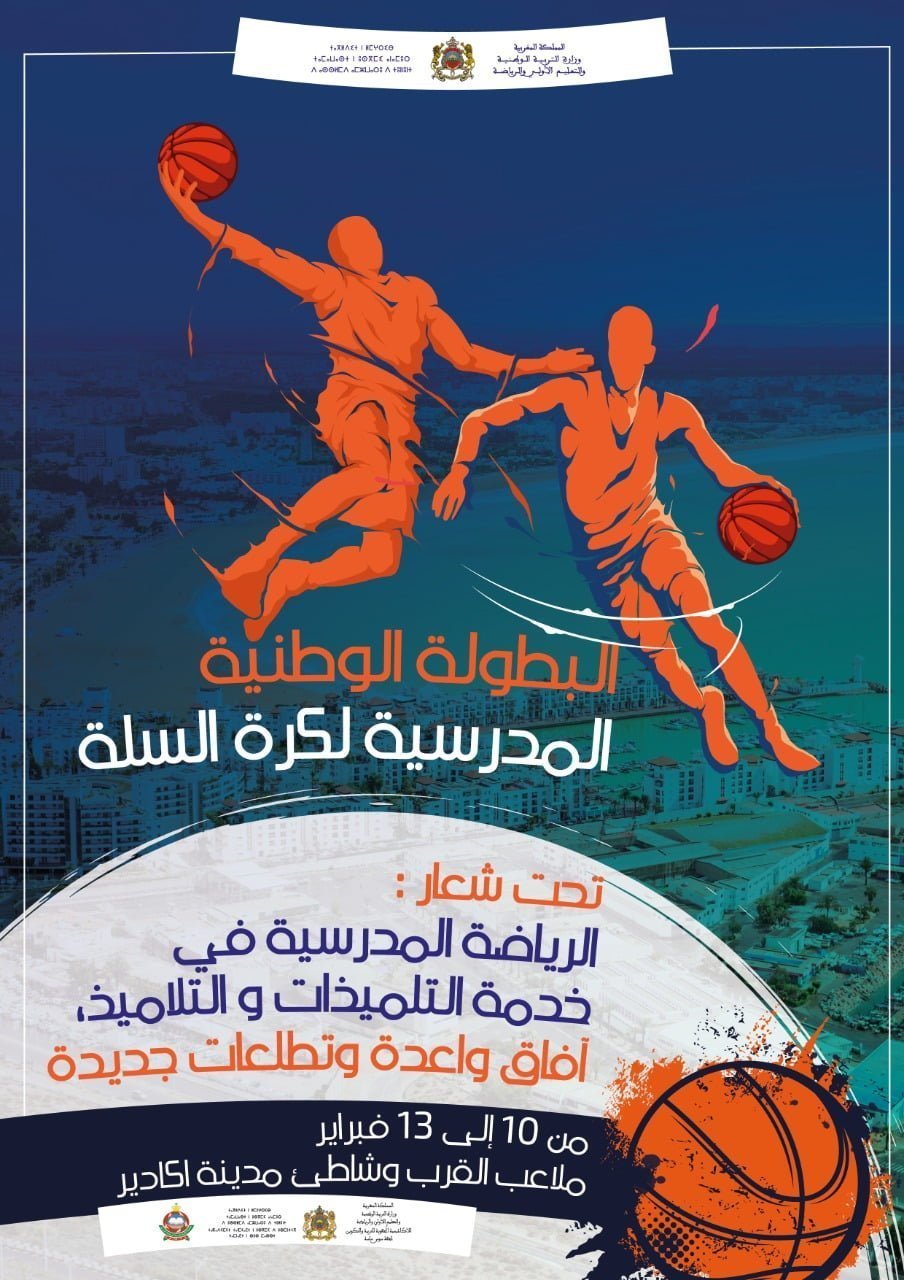مدينة أكادير على موعد احتضان فعاليات البطولة الوطنية المدرسية لكرة السلة المنظمة تحت لواء وزارة التربية الوطنية و التعليم الأولي والرياضة بشراكة مع الجامعة الملكية للرياضة المدرسية و الأكاديمية الجهوية للتربية و التكوين لجهة سوس ماسة.