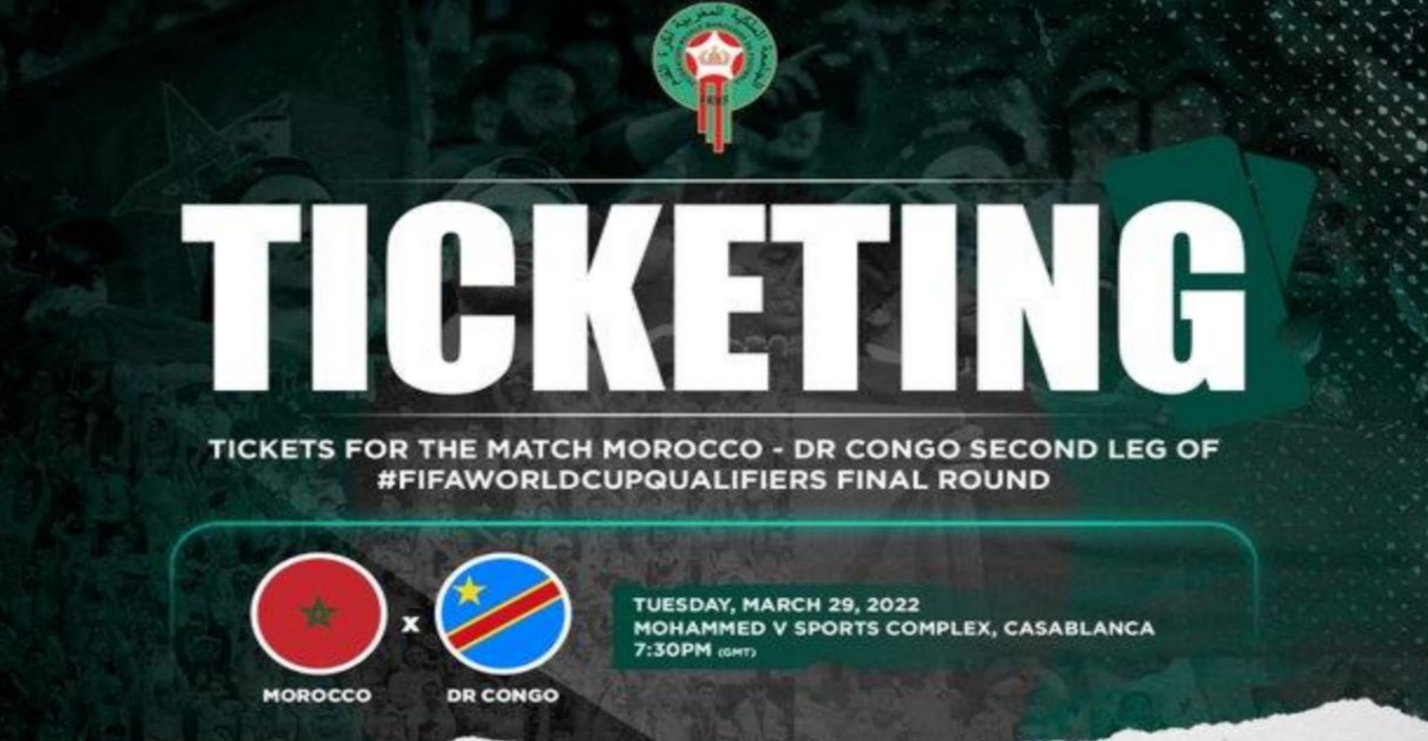 أعلنت الجامعة الملكية المغربية لكرة القدم أن مبيعات تذاكر مباراة إياب الدور الحاسم من التصفيات الافريقية المؤهلة لمونديال قطر 2022 لكرة القدم ، التي ستجمع المنتخب الوطني المغربي بنظيره للكونغو الديمقراطية يوم 29 مارس الجاري بالمركب الرياضي محمد الخامس بالدار البيضاء، بلغت الى حدود الساعة السادسة من مساء اليوم الخميس 28 الف و 300 تذكرة.