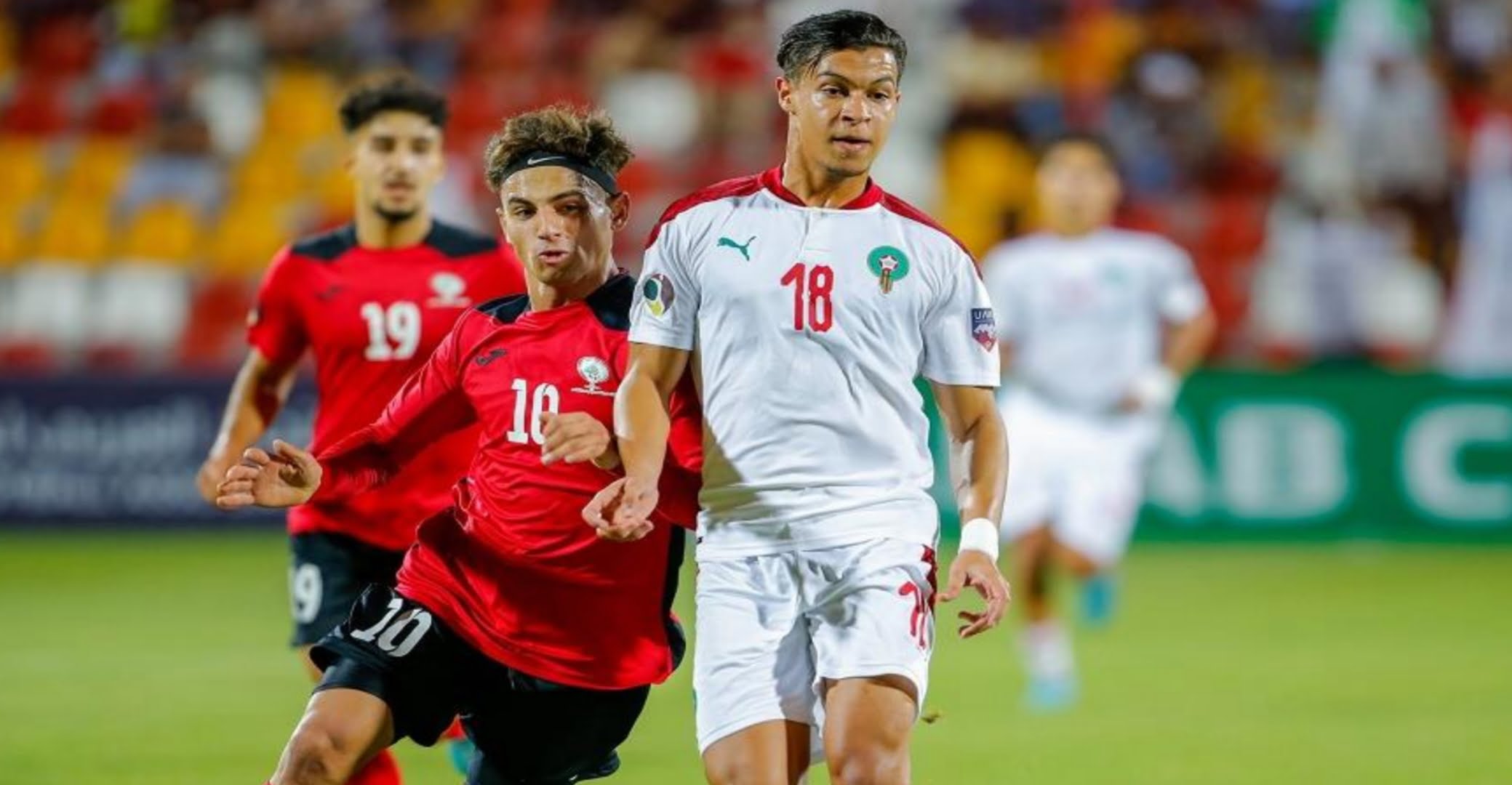 تأهل المنتخب المغربي لكرة القدم إلى دور ربع نهائي بطولة كأس العرب للمنتخبات تحت 20 سنة المقامة حاليا في مدينة أبها السعودية، بعد فوزه الثمين على نظيره الفلسطيني بهدف دون رد ، في المباراة التي جمعتهما مساء اليوم الخميس برسم الجولة الثالثة من المجموعة السادسة للمسابقة.