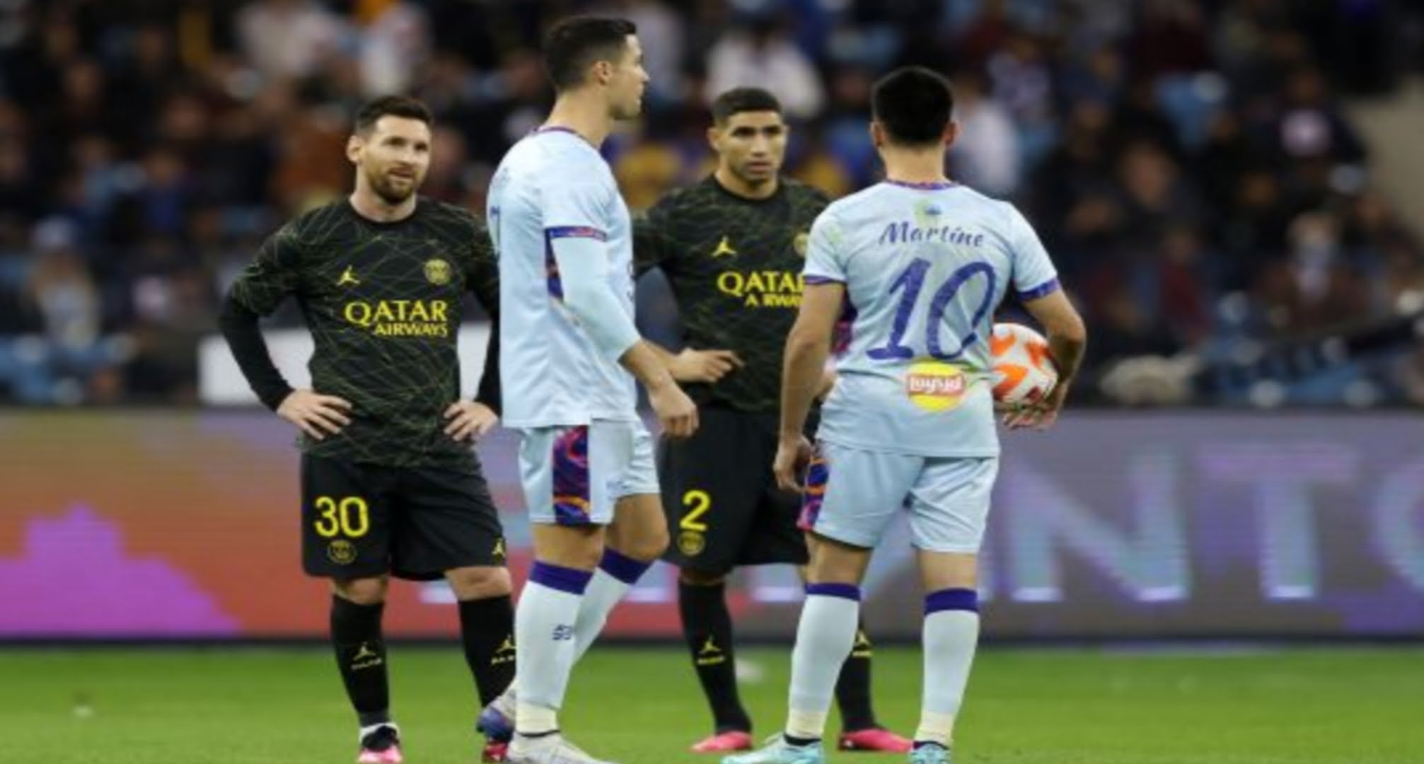 وتجدد خلال هذه المباراة الودية اللقاء بين الأسطورتين ميسي الذي رحل عن برشلونة وانضم إلى سان جيرمان الموسم الفائت، ورونالدو المنتقل حديثا إلى النصر، بعد فسخ تعاقده مع مانشستر يونايتد الإنجليزي.