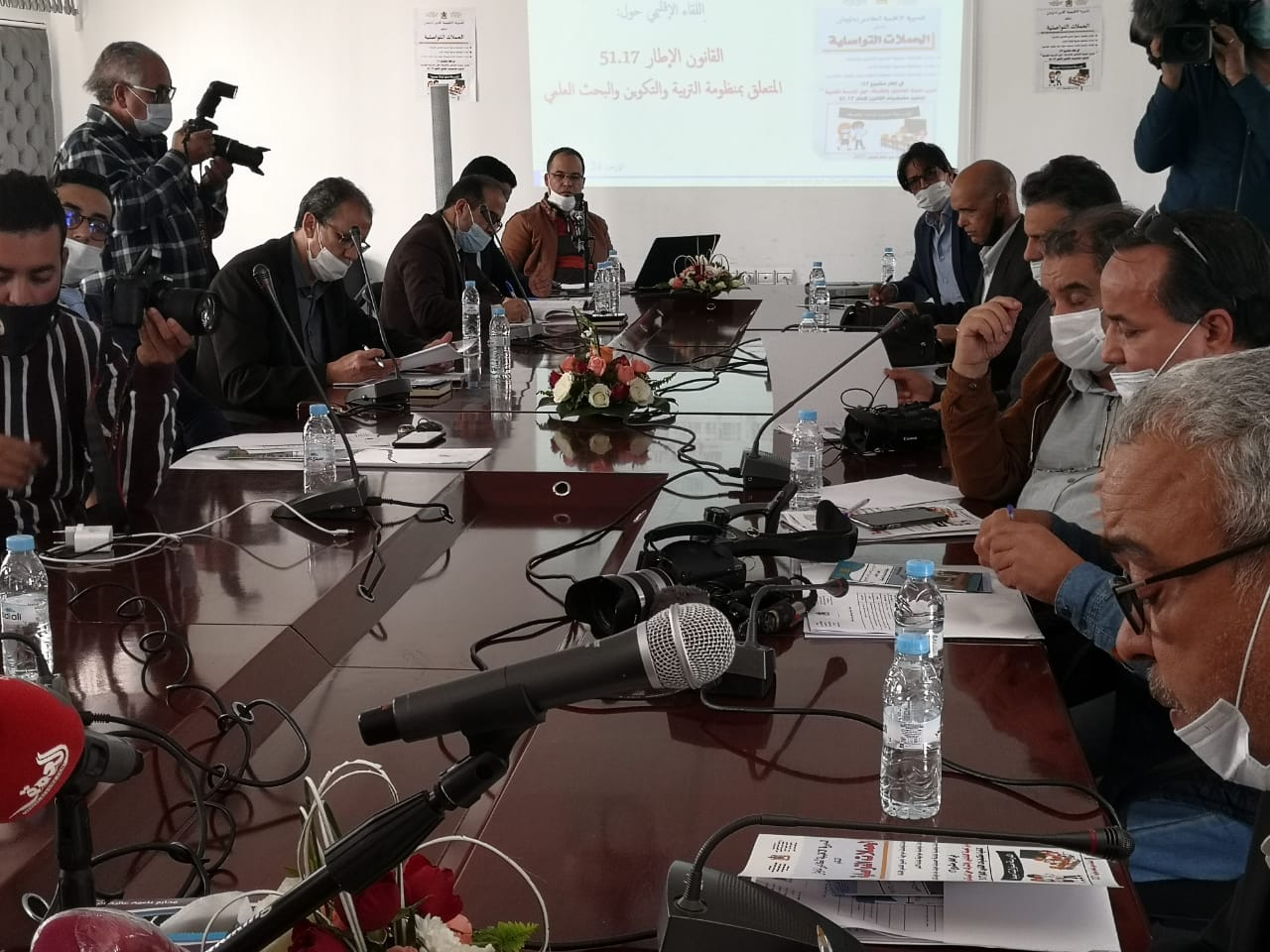 ود ترأس السيد المدير الاقليمي اشغال هذا اللقاء التواصلي بحضور السيد رئيس مصلحة التواصل وتتبع اشغال المجلس الاداري بالاكاديمية والسادة رؤساء مجالات المشاريع 18 والمنسق الاقليمي والمنسق الاقليمي لهيئة التفتيش، عضوالفريق الاقليمي للمشروع 17، والذي قدم عرضا قيما حول القانون الاطار، ومنسق المشروع 17 الى جانب عضوات فريق ذات المشروع وممثلي وسائل الاعلام.