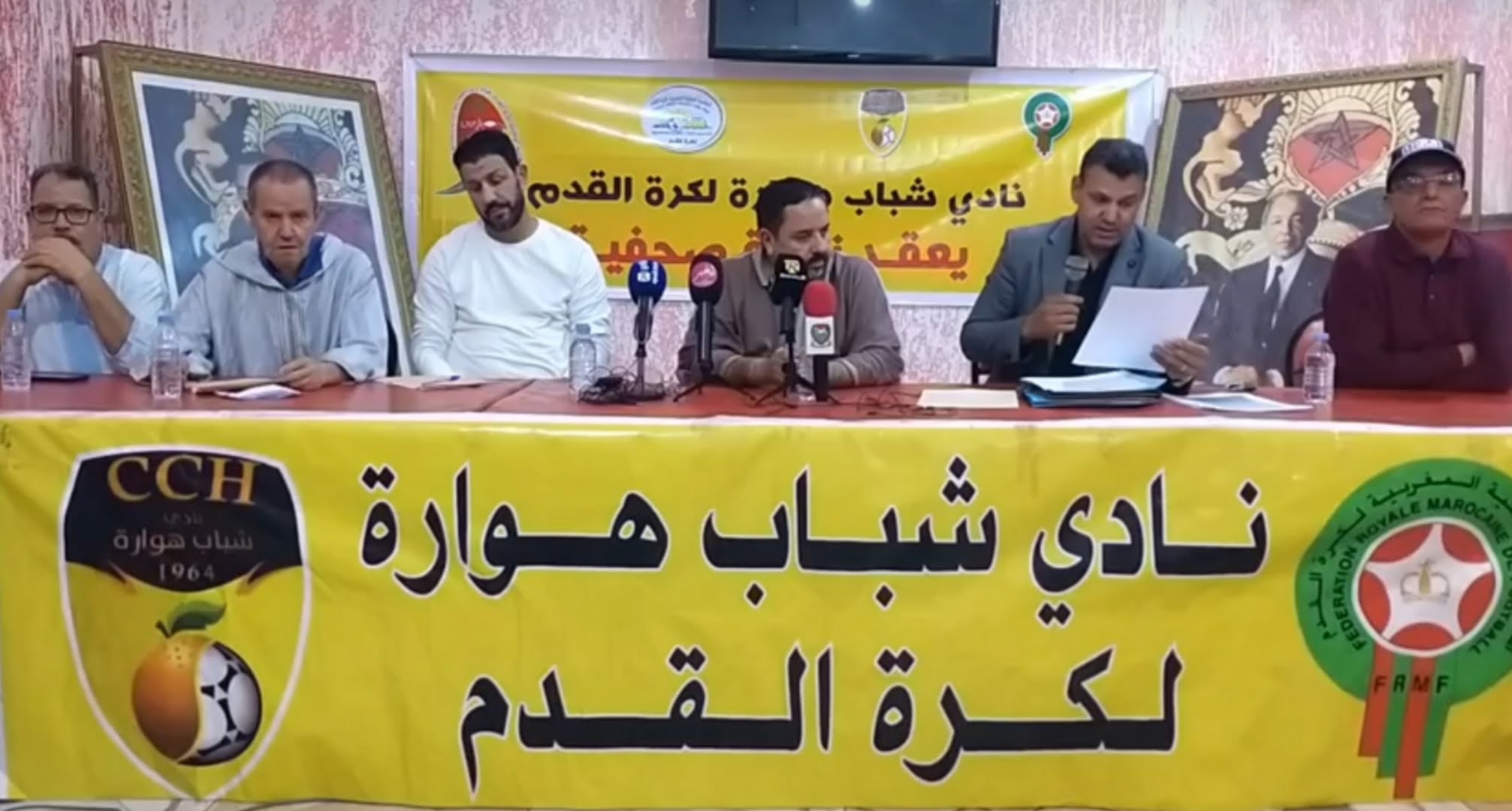 عقد المكتب المسير لنادي شباب هوارة ندوة صحفية أمس الخميس 13 أبريل 2023 بمقر نادي أمجاد هوارة بحضور أعضاء المكتب والمنخرطين ومدرب الفريق مصطفى قندار ومحام النادي السيد عزيز الشايب.