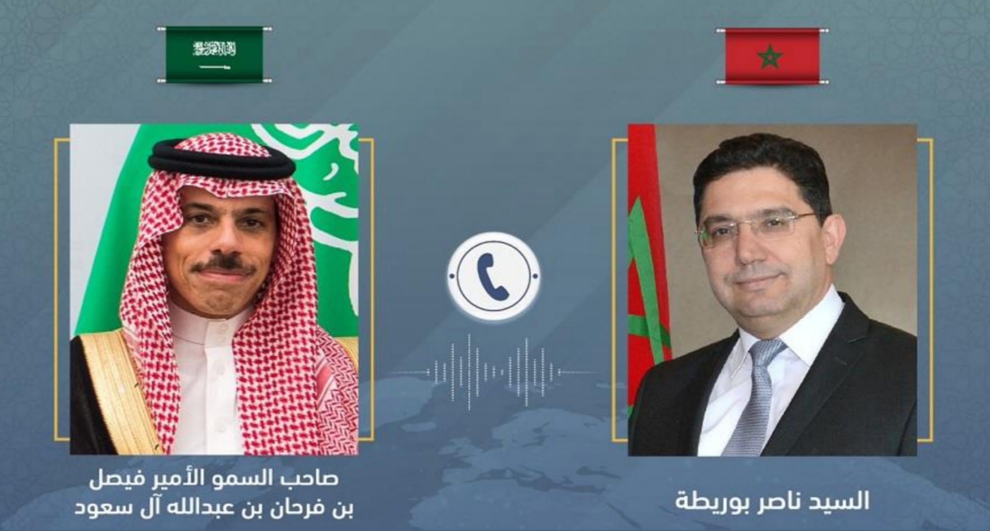 أجرى وزير الشؤون الخارجية والتعاون الإفريقي والمغاربة المقيمين بالخارج ناصر بوريطة، الجمعة، مباحثات هاتفية مع الأمير فيصل بن فرحان بن عبدالله وزير الخارجية السعودي، تناولت العلاقات الثنائية والتطورات على الساحتين الإقليمية والدولية.