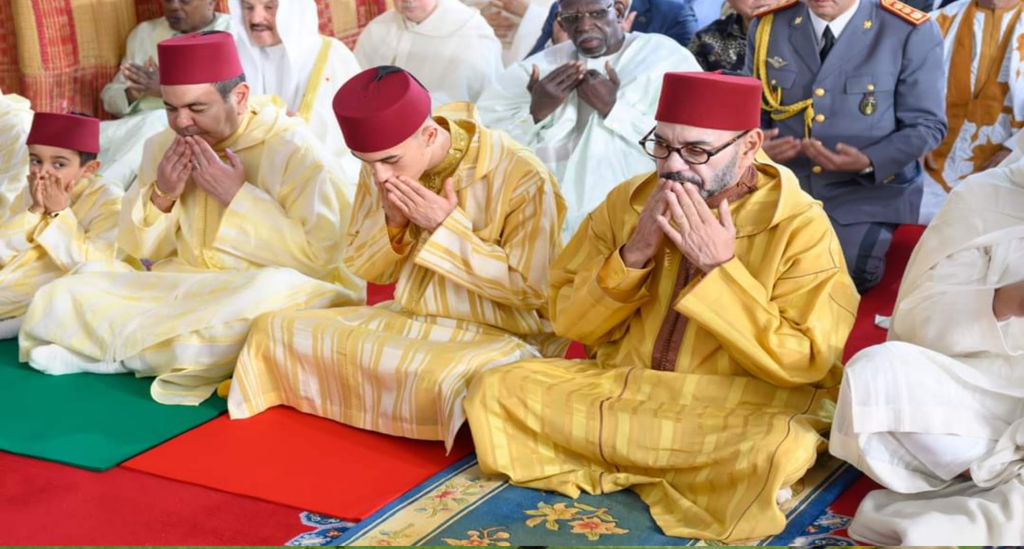 أدى أمير المؤمنين صاحب الجلالة الملك محمد السادس، نصره الله، مرفوقا بصاحب السمو الملكي ولي العهد الأمير مولاي الحسن، وصاحب السمو الملكي الأمير مولاي رشيد، وصاحب السمو الأمير مولاي أحمد وصاحب السمو الأمير مولاي اسماعيل، اليوم السبت، صلاة عيد الفطر بالمسجد المحمدي بالدار البيضاء، وتقبل جلالته التهاني بهذه المناسبة السعيدة.