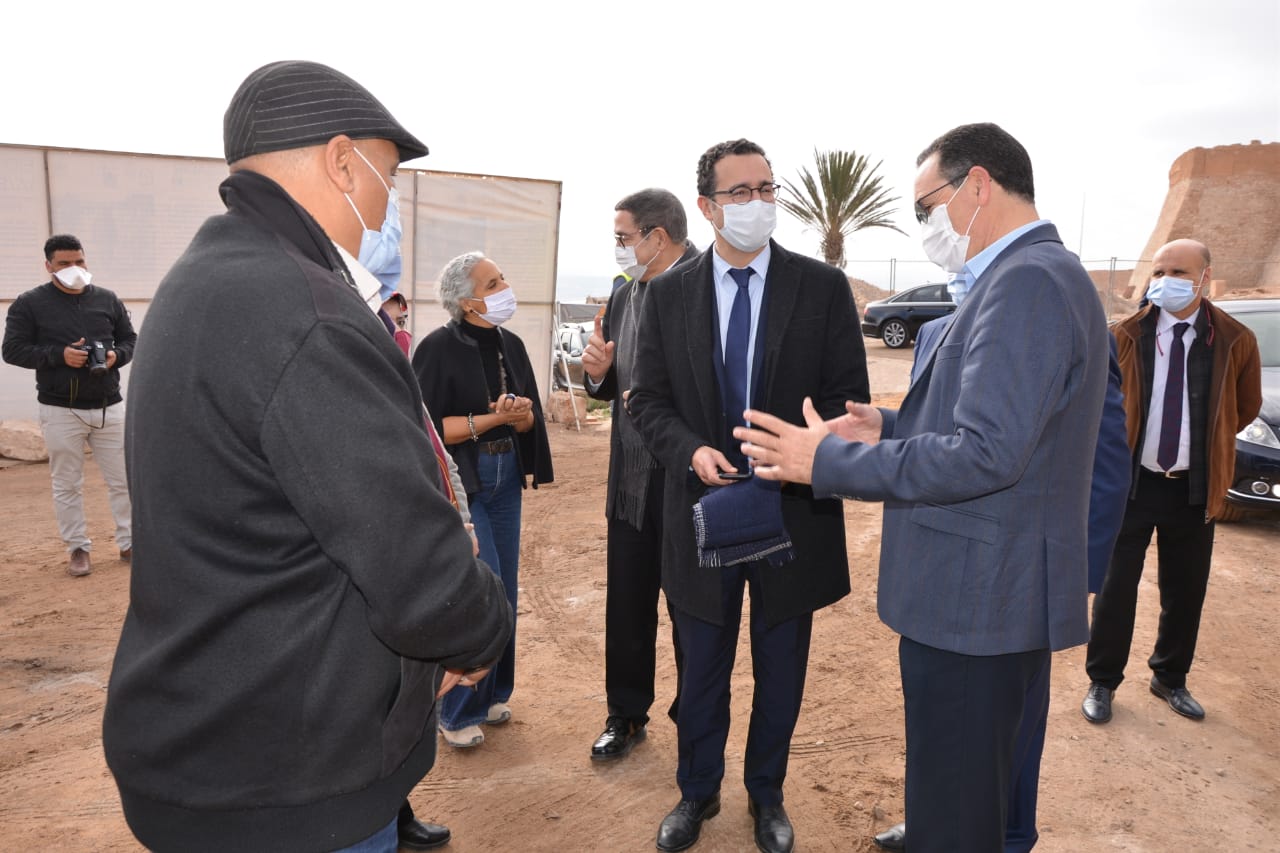 وخلال هذه الزيارة، تم الاطلاع على أشغال التهيئة التي يعرفها الموقع ، و على مختلف الجوانب المرتبطة بترميم و تهيئة قصبة اكادير اوفلا .