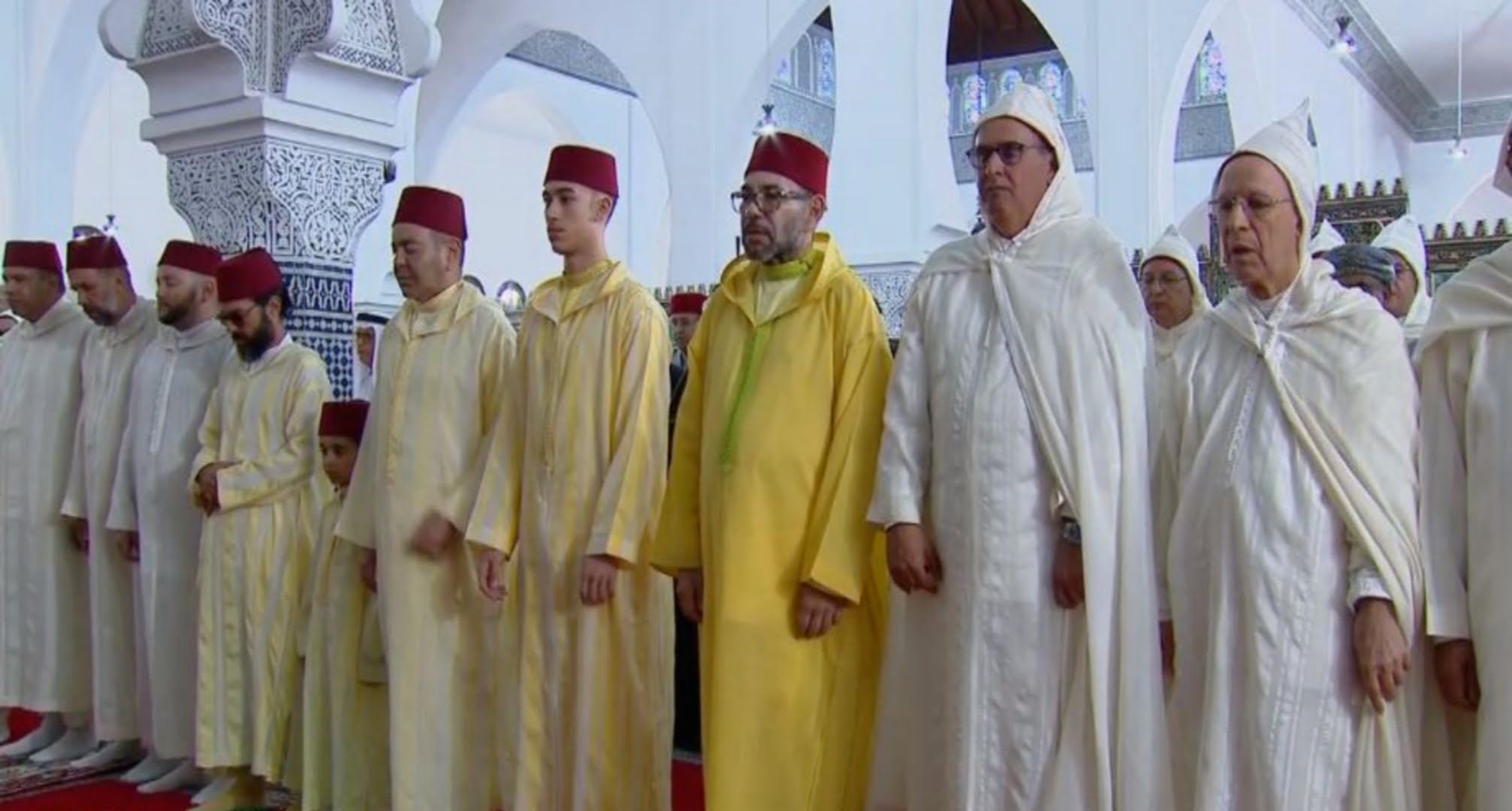 ولدى وصول الملك محمد السادس إلى المسجد، استعرض جلالته تشكيلة من الحرس الملكي أدت التحية.