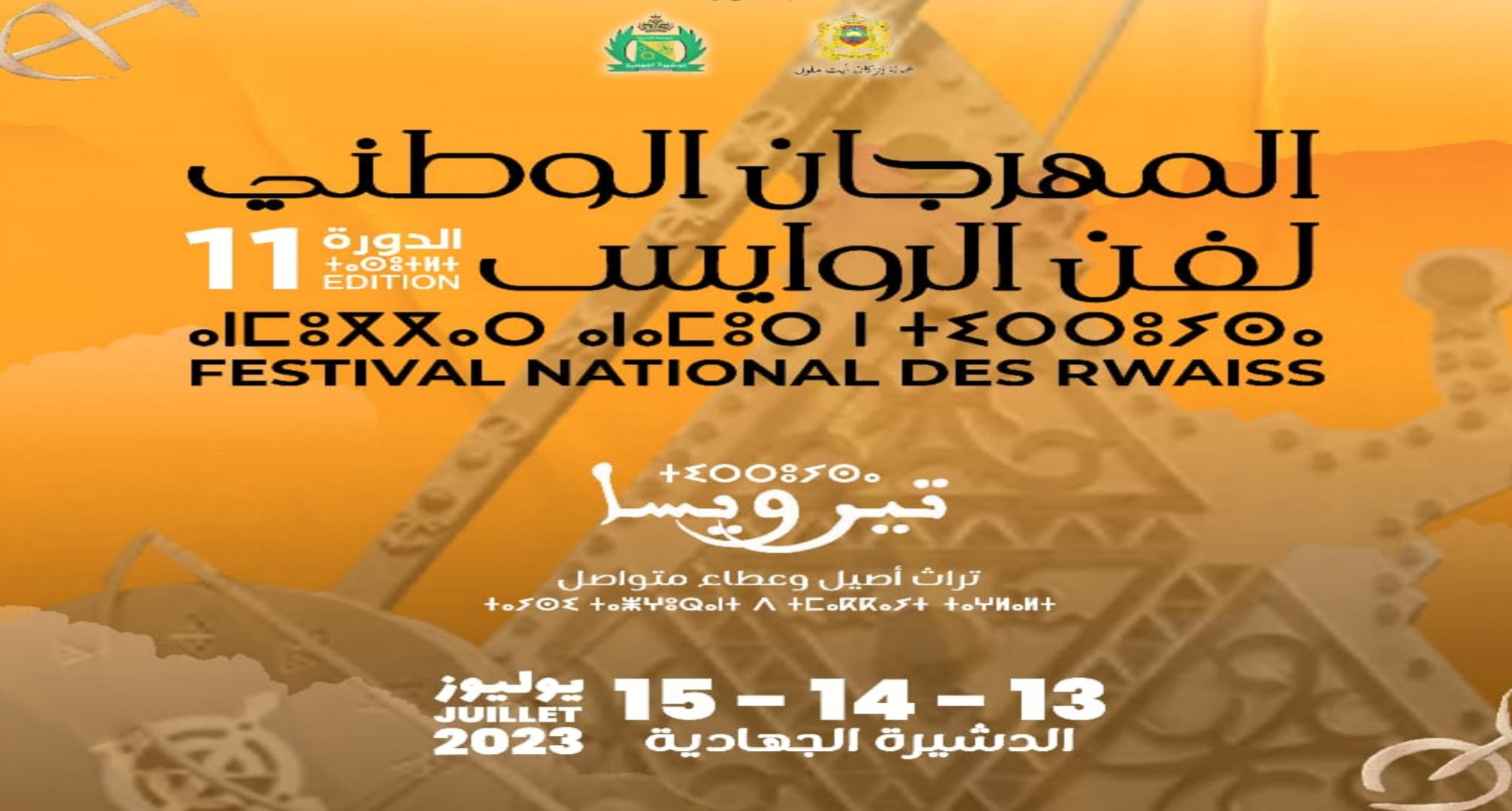 تحت الرعاية السامية لصاحب الجلالة الملك محمد السادس نصره الله، تنظم وزارة الشباب والثقافة والتواصل – قطاع الثقافة، بتعاون مع عمالة انزكان ايت ملول والمجلس الجماعي للدشيرة الجهادية، الدورة 11 للمهرجان الوطني لفن الروايس، أيام 13 و14 و15 يوليوز 2023 بمدينة الدشيرة الجهادية.