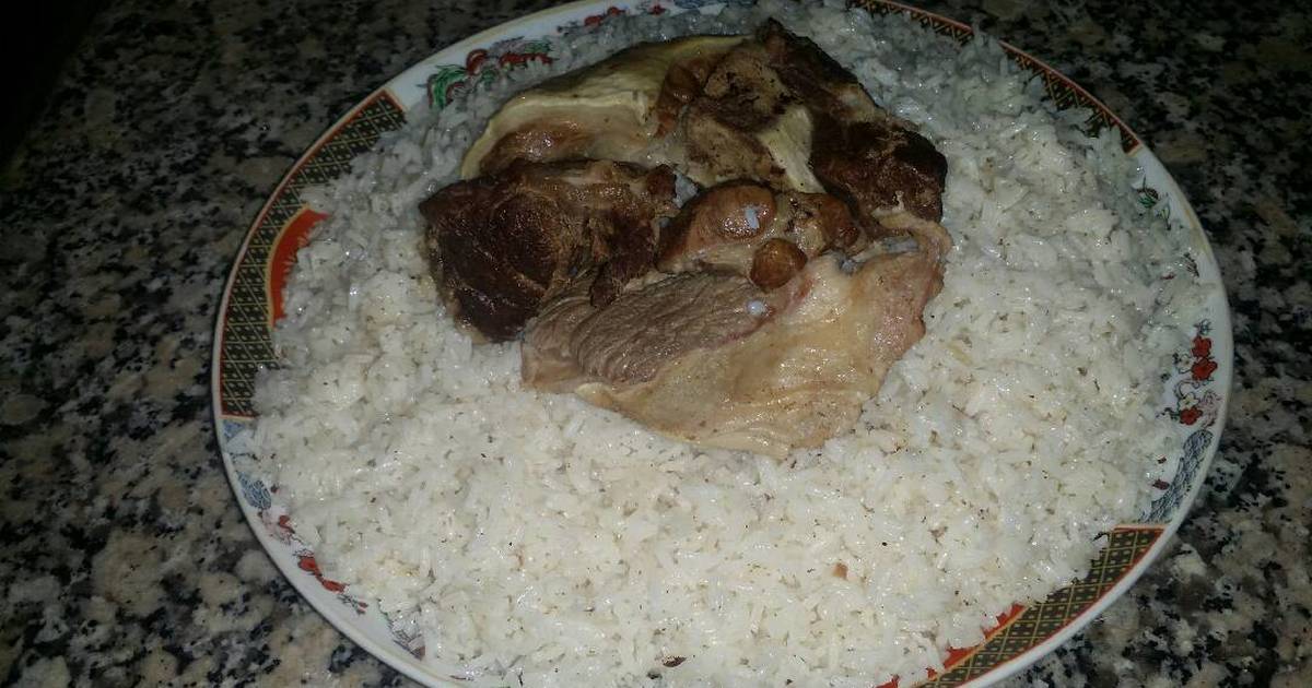 بعد نضج اللحم نزيله ونضع الأرز في الطنجرة.