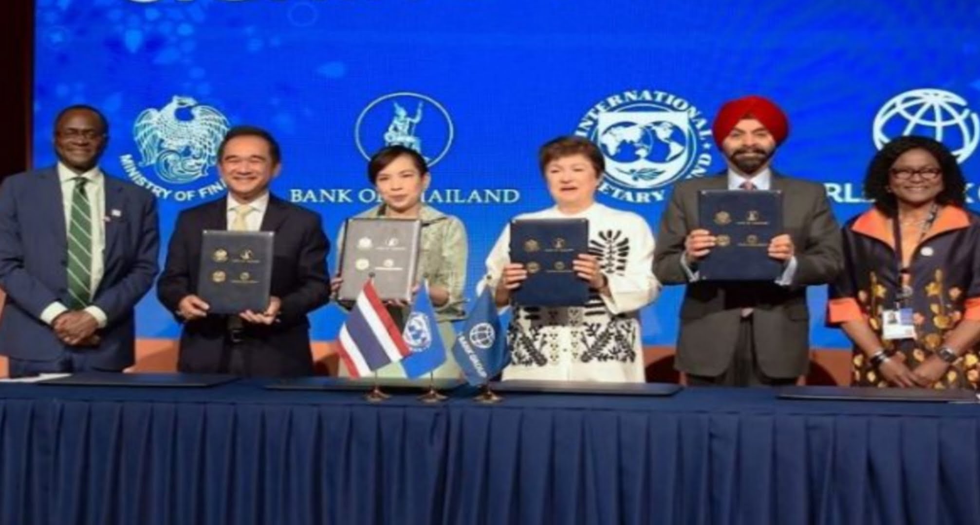 وجرى رسميا التوقيع على استضافة بانكوك الاجتماعات السنوية لعام 2026 من طرف كریستالینا غورغییفا، المديرة العامة لصندوق النقد الدولي، وأجاي بانغا، رئيس البنك الدولي، وكريسادا شينافيشرانا، نائب وزير المالية التايلاندي.