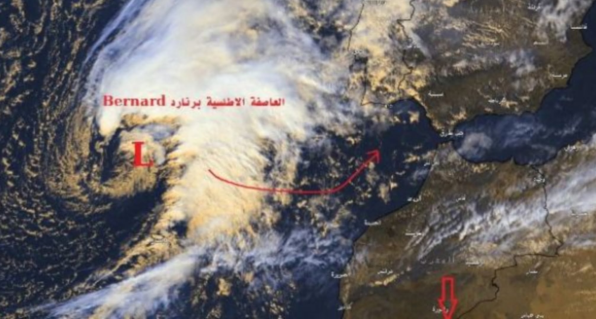 تتجه العاصفة الأطلسية “Bernard” حاليا نحو المغرب وشبه الجزيرة الايبيرية (إسبانيا والبرتغال) تصاحبها رياح شديدة وقد تحمل أمطار غزيرة بداية من صباح الأحد.