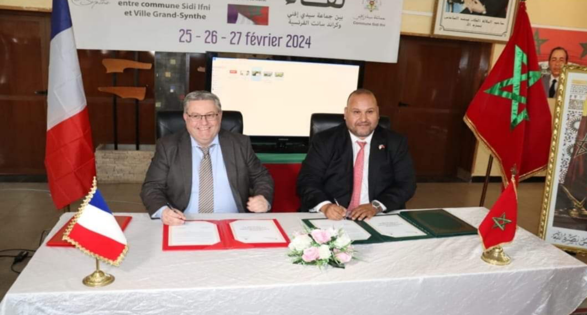 استقبل رئيس جماعة سيدي إفني رشيد البطاح، وفدا فرنسيا يمثل جماعة كراندسانت برئاسة السيد العمدة والوفد المرافق له، وذلك في إطار زيارة عمل لمدينة سيدي إفني والتي استمرت أيام 25.26.27 من شهر فبراير الجاري 2024.