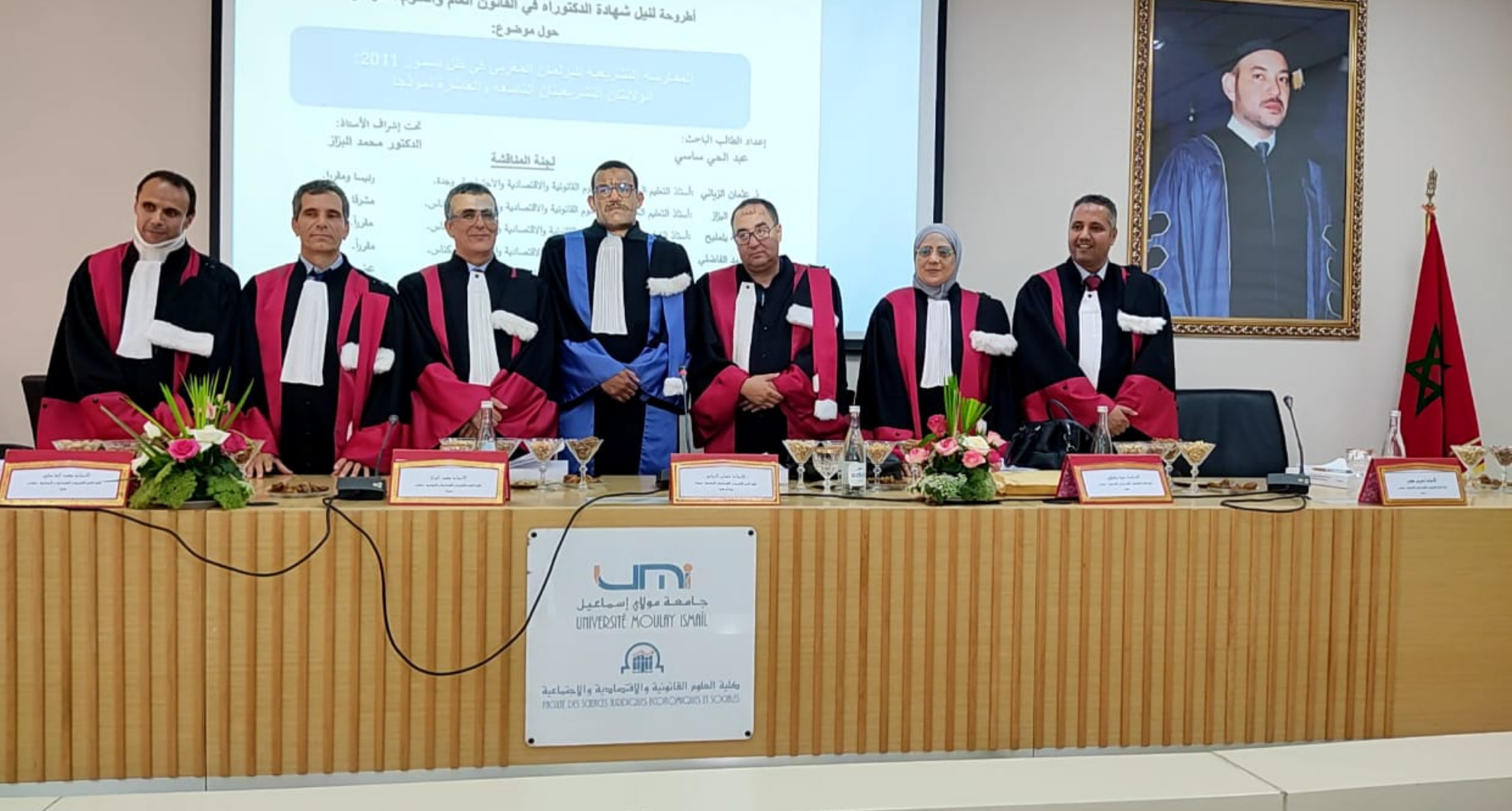 ناقش صبيحة يومه السبت 8 يونيو 2024 بكلية الحقوق بمكناس الاستاذ عبد الحي ساسي رئيس الدائرة الأولى لويسلان أطروحته لنيل شهادة الدكتوراه في القانون العام والعلوم السياسية في موضوع : ” الممارسة التشريعية للبرلمان المغربي في ضل دستور 2011 للولايتين التشريعيتن التاسعة والعاشرة نموذجا” ، امام لجنة المناقشة المكونة من السادة :