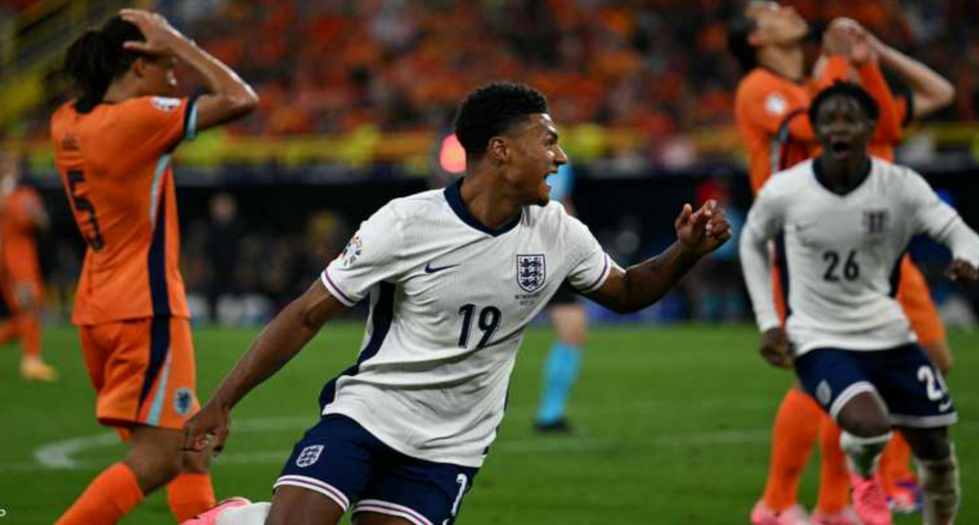 وانتصر المنتخب الإنجليزي على نظيره الهولندي بنتيجة 2-1، في نصف نهائي كأس أوروبا على ملعب دورتموند، في اللحظات الأخيرة من اللقاء.