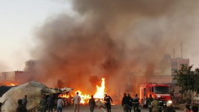 حريق مهول بسوق المتلاشيات بمدينة بيوكرى